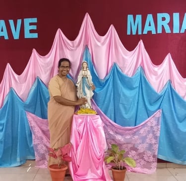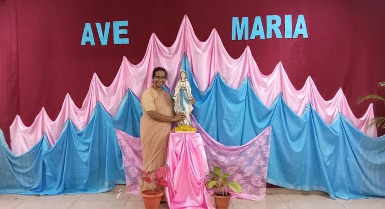 "On August 15, 2025, the Feast of Our Lady's Assumption marked the beginning of the Marian month for the Sisters and Hostel girls of Madanthyar. The girls decorated the Our Lady statue in four different places. That evening, they presented a creative animated Rosary to showcase their love and devotion to the Blessed Mother. Various competitions were held throughout the month to foster devotion. The month concluded with presentations on the apparition of Our Lady. Sr. Hilda Mascarenhas and Sr. Lilly Pushpa offered words of encouragement, and Sr. Hilda distributed prizes to the winners, making it a wonderful evening in honor of Mary, our Mother."