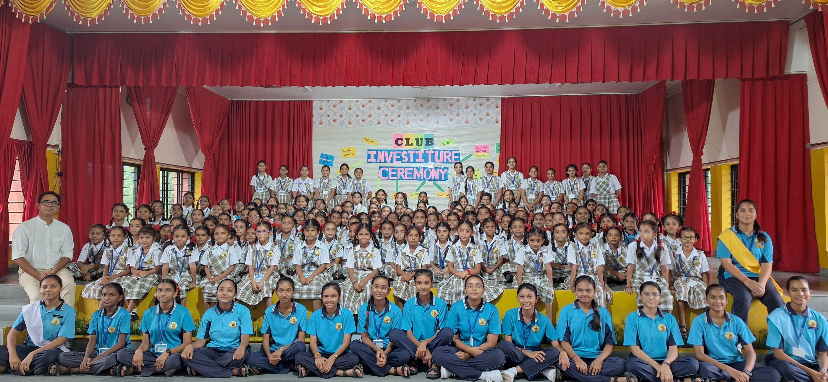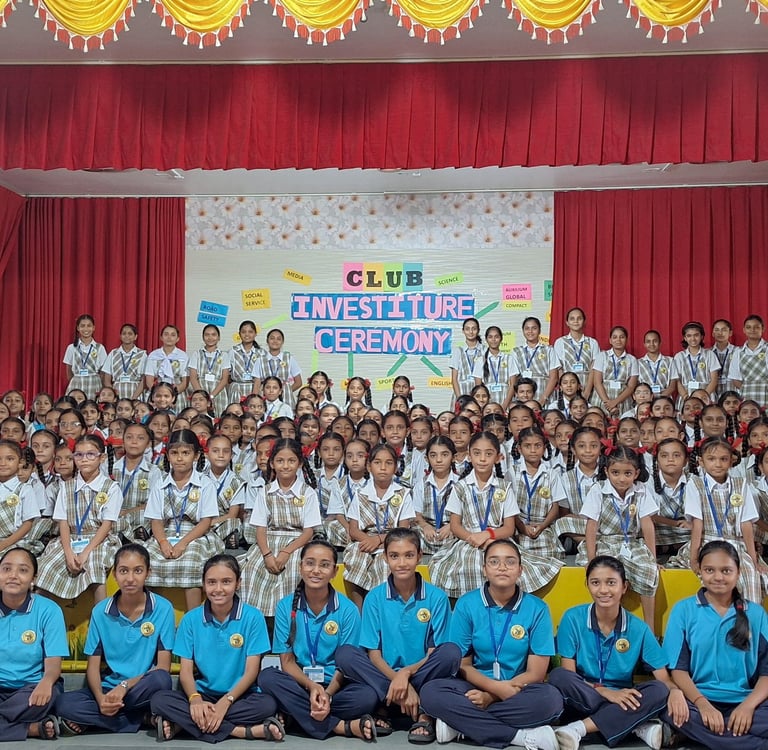 The ceremony was conducted section-wise for the Primary, Middle, and High School students, including those from the Gujarati medium. Every student enrolled in a club of their choice, promoting inclusivity and active participation in school life. Students were inducted into a wide range of vibrant clubs, including Eco Club, Science Club, Discipline Club, Sports Club, STEAM Club, Media Club, English, Hindi, Gujarati Club, Dramatics Club, Social Service club and also the members of Road Safety Patrol (RSP), Auxilium Youth group, Bharat Scouts and Guides were invested.