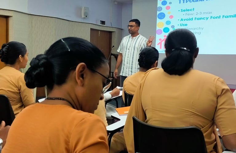 The resource persons explained how to prepare an effective PowerPoint presentation, highlighting key elements such as clarity, simplicity, visual consistency, and audience engagement. We learned the importance of using high-quality images, maintaining a logical flow, and applying proper design principles like contrast, alignment, and readability.