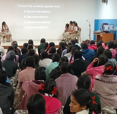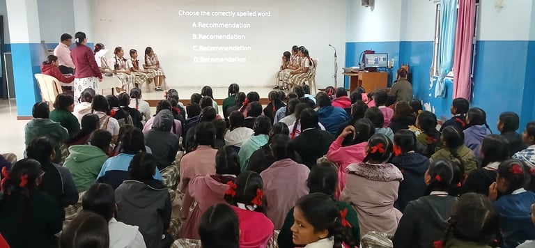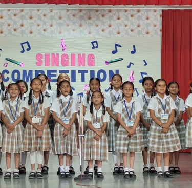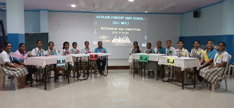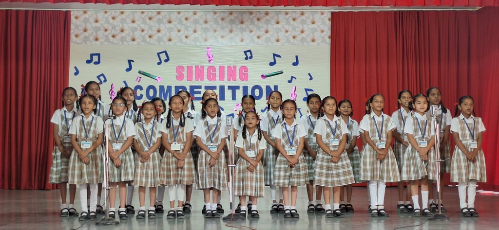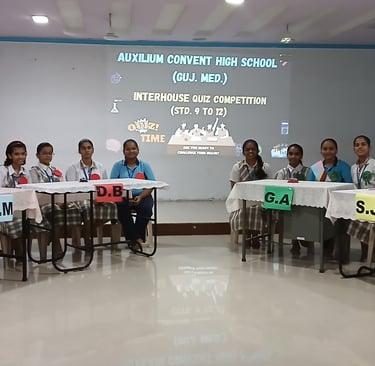 From 2 February to 25 February 2025, Auxilium Baroda students from Grades 1 to 8 participated enthusiastically in various Intra-school Competitions such as inter-house group singing, storytelling, Quiz, handwriting, spelling Bee and extempore. The competitions were conducted section-wise, grouping students as Grades 1 to 3, 4 to 5, and 6 to 8, and included participation from both the English and Gujarati mediums.