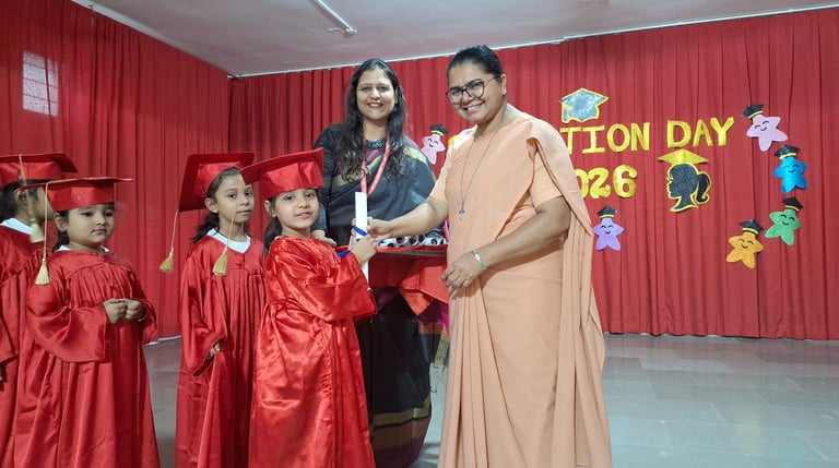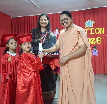 On 11 April 2026, Auxilium Baroda joyfully celebrated a memorable milestone as the Senior KG students completed their pre-primary education. A grand Graduation Ceremony was organized, marking a proud transition for the young learners as they prepare to step into the primary section, Grade 1.