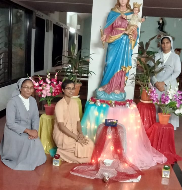 We the community of Auxilium Youth Animation Centre - Dahanu began the Marian week on 25th to 31st August. We started the Marian week with a Prayer service conducted by Sr. Gloria Landgi. During this week we had short introduction on Mary and Rosary’s were guided creatively by each Sister to show our love for our Blessed Mother. Every day for good night we watched a different miracles and apparitions of our Blessed Mother. We conclude the Marian week with a prayer service by Sr. Benzina Vayaghar. We played Marian games and favorite hymns, during recreation. We showed our love for Mary by being bearers of Joy in our community in our way of dealing with each other.