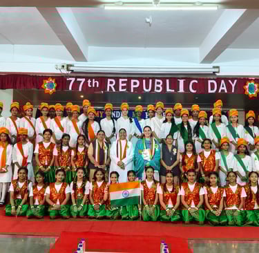 Auxilium High School, Lonavala, celebrated Republic Day with great enthusiasm and patriotic fervor. The programme commenced with the unfurling of the national flag, followed by a spirited procession that set the tone for the day. The event continued with a warm introduction and the ceremonial lighting of the lamp, symbolizing knowledge and unity. A solemn prayer and a graceful prayer dance created an atmosphere of reverence and devotion.