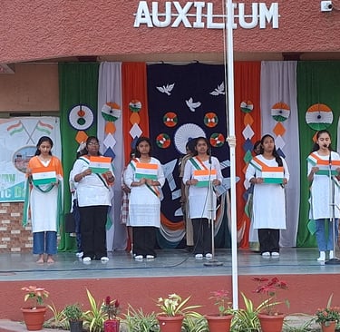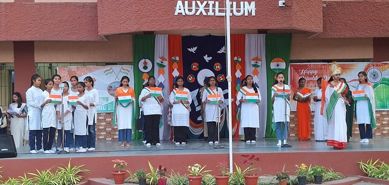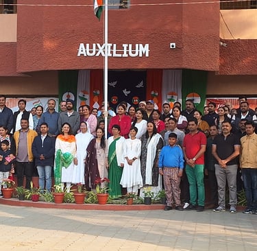 Auxilium Baroda celebrated the 77th Republic Day with great pride and patriotic fervour on 26 January 2026. The day was filled with fond remembrance of our visionary national leaders who drafted our Constitution with wisdom, foresight, and attention to every detail. Students, teachers, non-teaching staff, management members, parents, and well-wishers gathered together to commemorate this significant occasion.