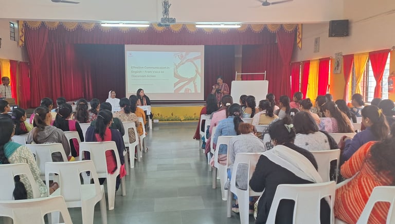 Auxilium Baroda organized a teachers’ seminar on 7th February 2026 under the English Saathi programme, featuring a masterclass on “Effective Communication in English — from Voice to Classroom Actions.” The session was conducted by Mrs. Shaily Shah, an experienced educator and trainer.