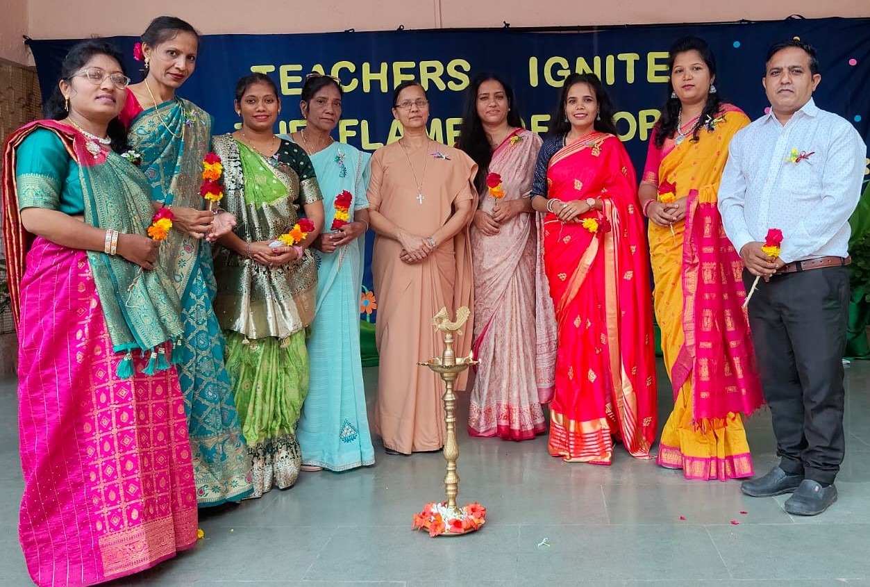 The cultural programme that followed was a burst of colour and energy. Children put up a beautiful mix of dances, action songs, group songs, and a skit, each performance woven with the message of hope and appreciation. Their innocent smiles, graceful steps, and heartfelt voices turned the stage into a garden of gratitude, where every flower bloomed for the teachers. Adding depth to the celebration was the thoughtful message from the Manager Sr. Maria Macwan, who reminded us that teachers are the true light-bearers of society. With every lesson, every word of encouragement, and every act of kindness, teachers keep alive the flame of hope in young hearts, guiding them toward a brighter tomorrow.