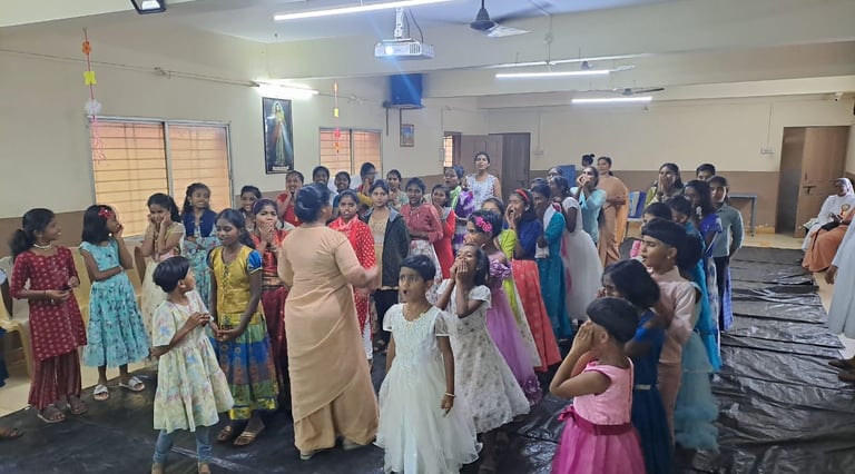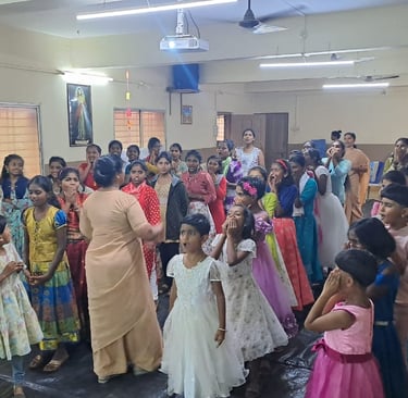In the afternoon, at 2:30 p.m., the children from Thangudhama hostel joined the Auxilium hostel girls for a quiz on the life of St. Maria Troncatti, along with fun games and activities. The children participated enthusiastically and enjoyed the day thoroughly.