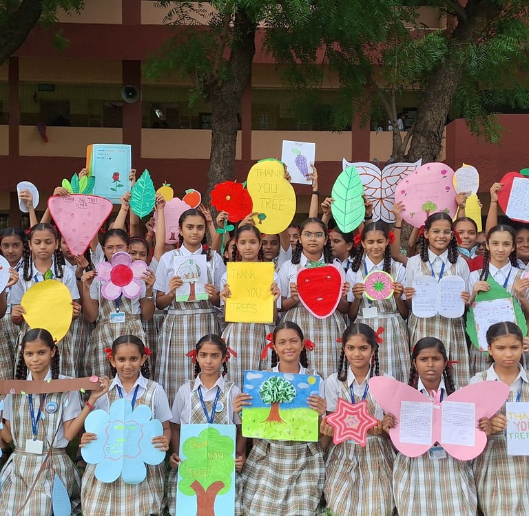 Technologically inclined students created Eco Memes and Comic Strips, conducted surveys on “Air Quality vs. Greenery,” and spread awareness through campaigns and talks. The Group Tree Plantation Drive was a fitting finale, as students planted saplings and pledged to care for them. Recycling paper and making Tree Fact Flashcards further added to the spirit of sustainable living.